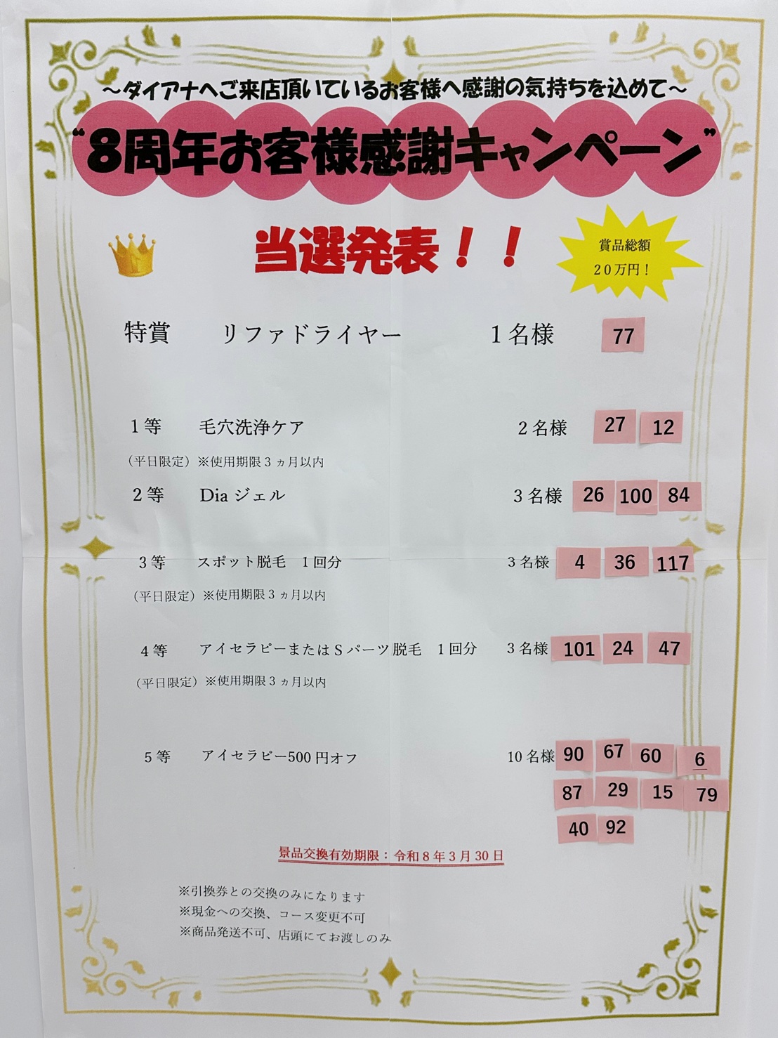 11月に実施した 8周年特別キャンペーン抽選会 の